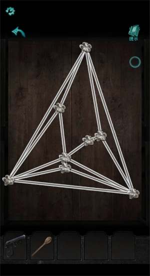 4、打开最后一个英文密码柜,根据柜子处手势指向可得CCD(C),最后一位为穷举。打开盒子进行小游戏。线段不交叉即可。得到一团线