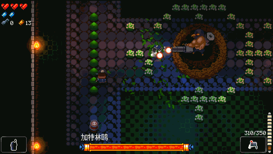 首先是加特林鸥,弹幕量适中,本层中只需要一点走位就能应对的BOSS,遇到一些开阔的BOSS房地形会稍微难以应对,而像图书馆那种的就比较好应对,找间隙输出,BOSS输出则秦王绕柱。