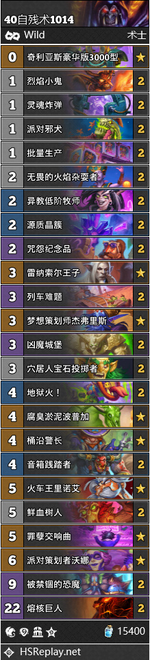 炉石传说标准40牌自残术卡组一览